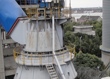 在離心力的連續(xù)驅(qū)動下物料不斷向磨盤外緣運動,當(dāng)離開磨盤的物料遇到通過風(fēng)環(huán)進入磨內(nèi)的熱氣體并隨之上升,經(jīng)磨機中部殼體進入到分離器中,在此過程中物料與熱氣體進行了充分的熱交換,水分迅速被蒸發(fā)。選粉機控制著輥磨出口的成品細度,大于規(guī)定尺寸的顆粒被分離,并落回至磨盤,滿足細度要求的物料通過選分機進入成品倉。